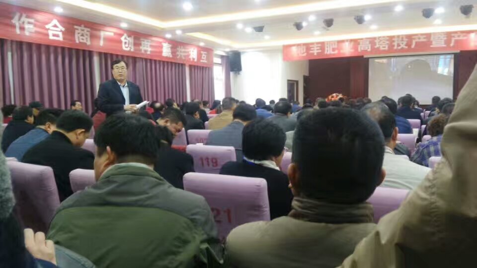 參觀高塔造粒項(xiàng)目后,在焦作市地豐肥業(yè)有限公司三樓多媒體會(huì)議室舉行高塔產(chǎn)品訂貨會(huì),大家濟(jì)濟(jì)一堂,共話營銷新模式,齊心協(xié)力實(shí)現(xiàn)互利共贏新合作。